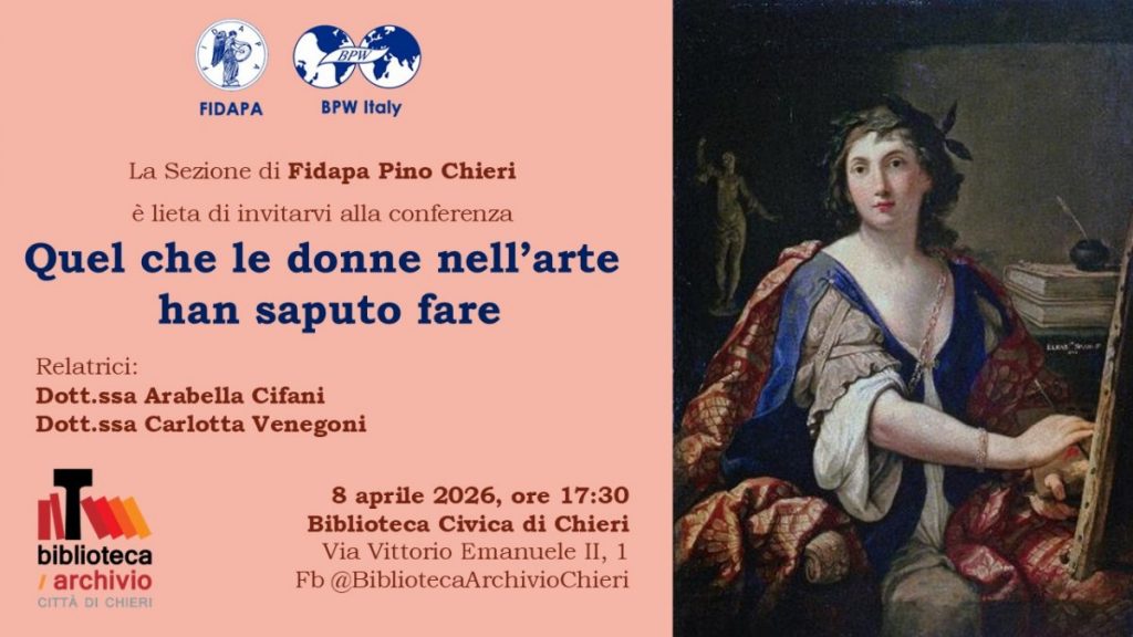 Mercoledì 8 aprile alle 17.30 h conferenza “Quel che le donne nell’arte han saputo fare” presso la Biblioteca Civica di Chieri.